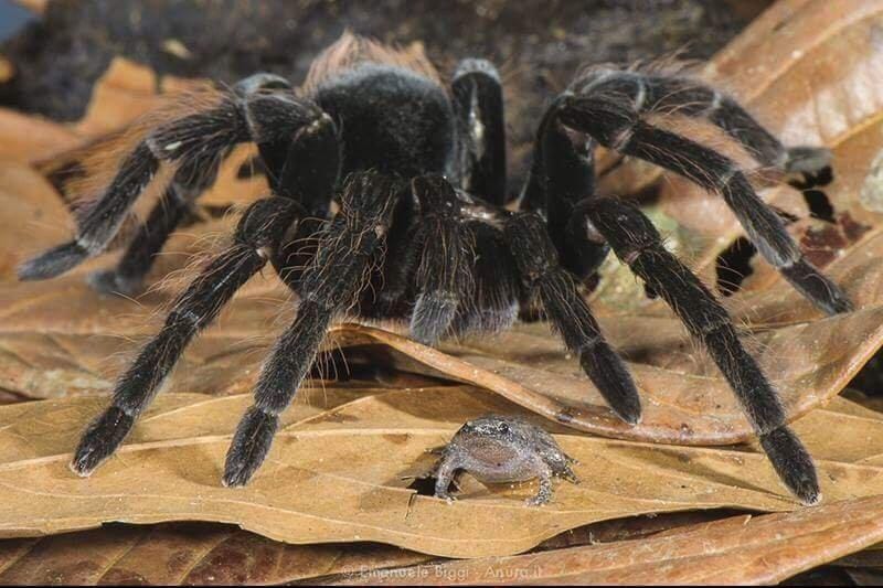 Radical love between a Giant Tarantula and a Tiny Frog
